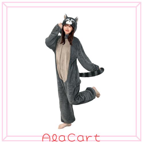 [OLAOLA] アライグマ 着ぐるみ パジャマ 柔らかい 大人用 部屋着 動物 コスチューム 仮装 もふもふ 暖かい 部屋 防寒 対策 ルームウェア