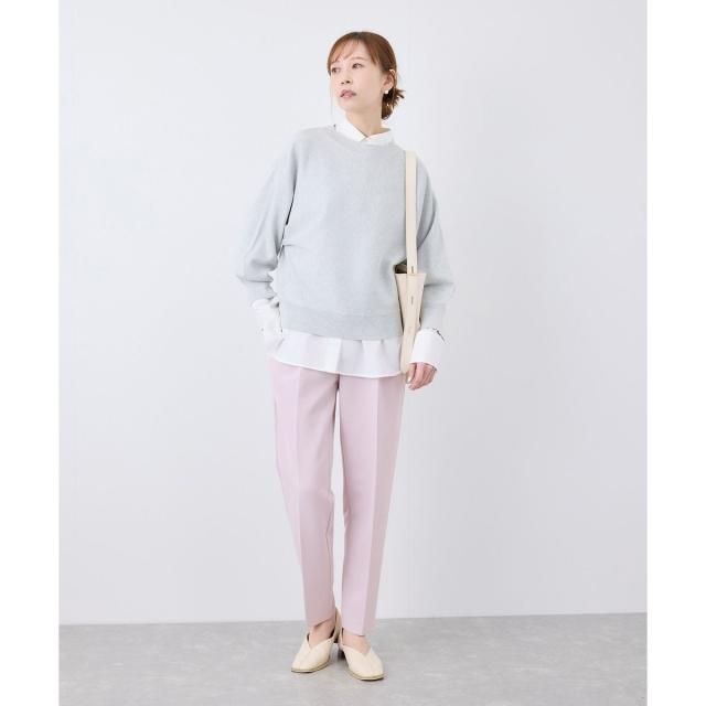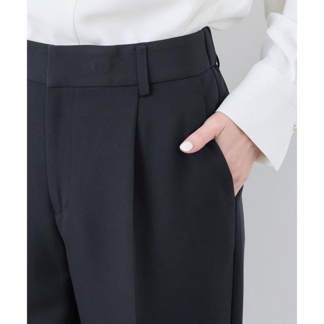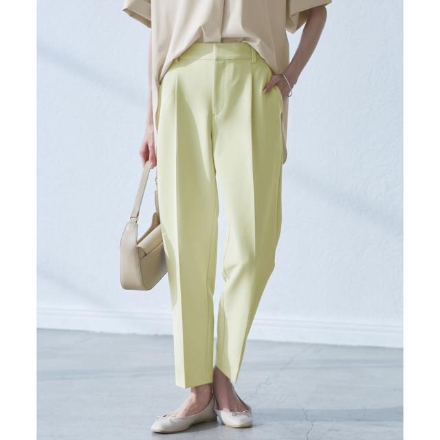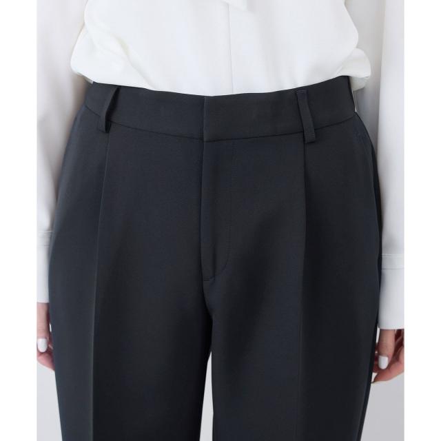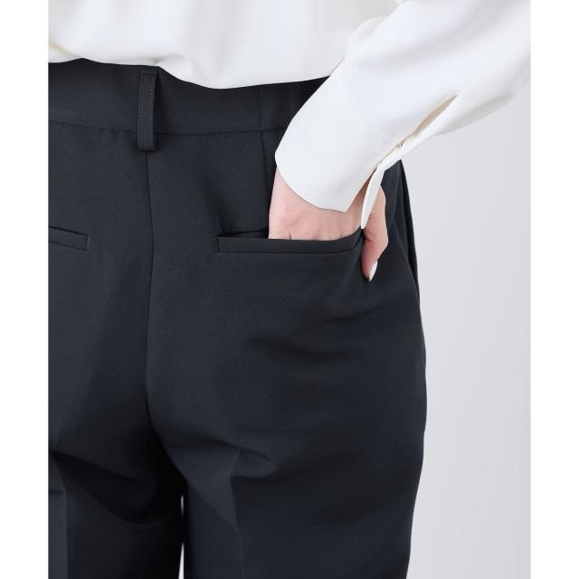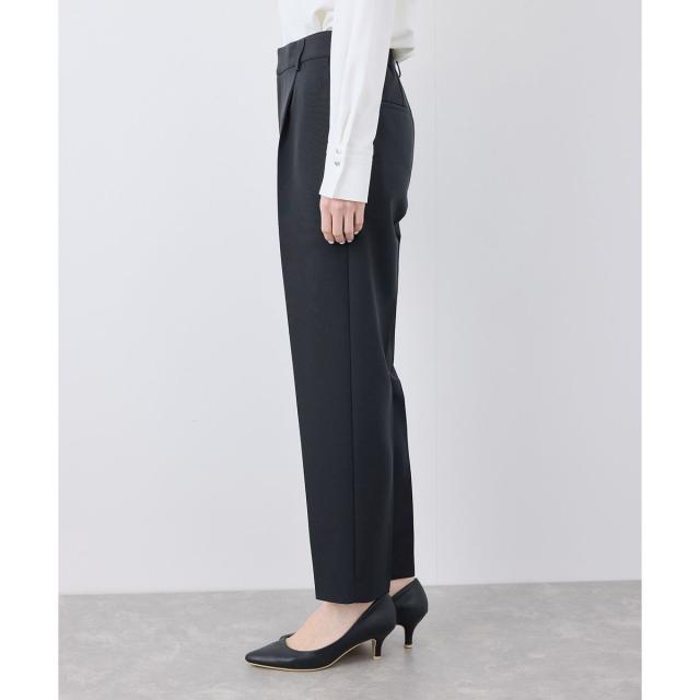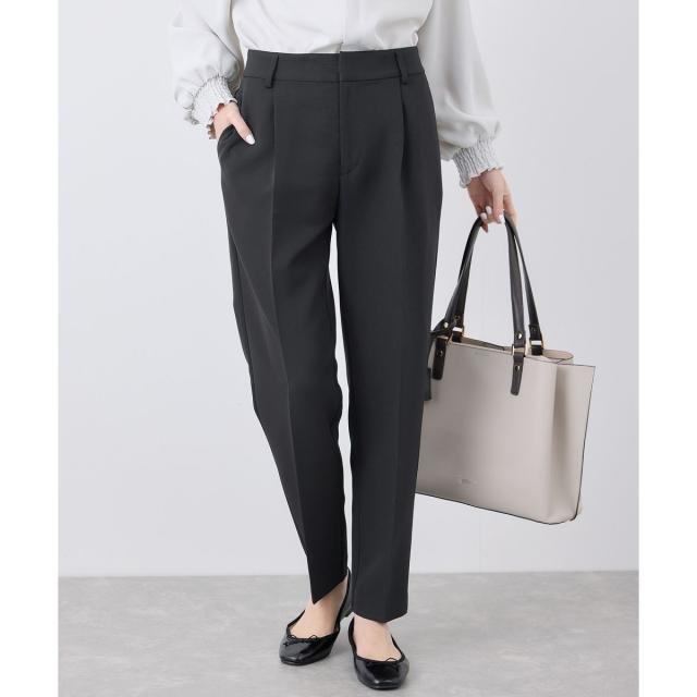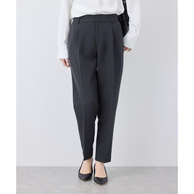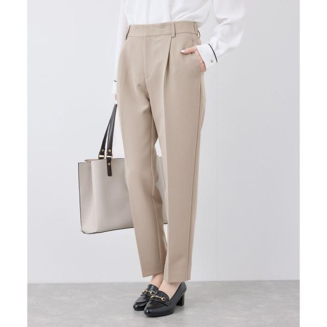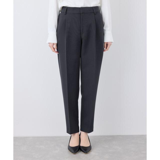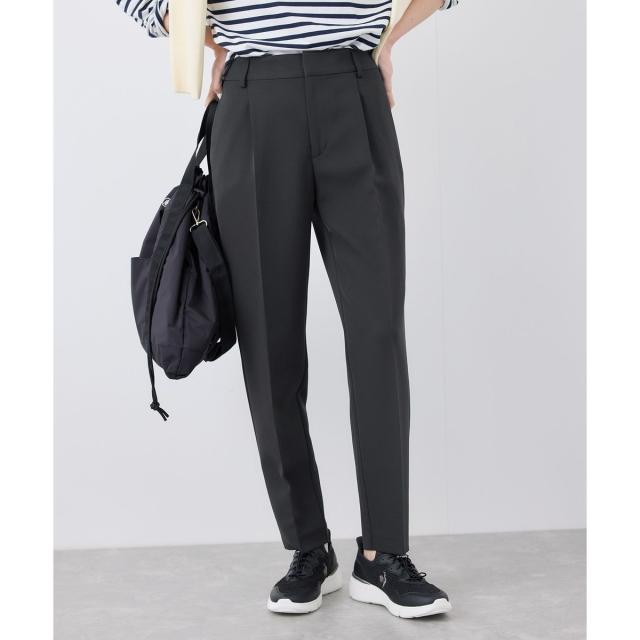 ・縦横にのびるきれいめなダブルクロス素材を使用したテーパードパンツ。