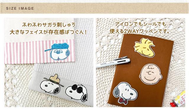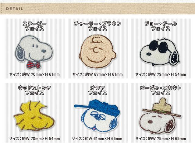 PEANUTS スヌーピー サガラワッペン 大 フェイス アイロン シール かわいい 刺繍 グッズ プレゼント 服