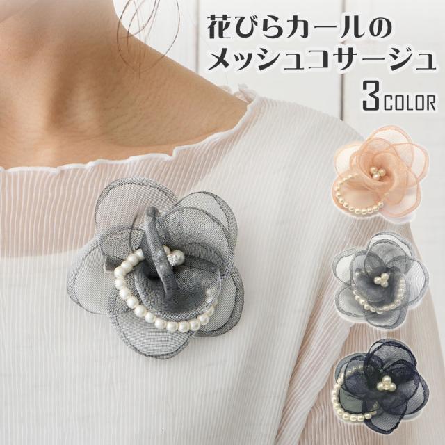 メール便送料無料コサージュ 入学式 卒業式 花びらカール メッシュ 可愛い 上品 パール 約9cm 華やか オーガンジー ブローチ 10d 結婚式 レディース フォーマル 母親 ママ 入園式 スーツ 可憐 お洒落 透け感 きらきら コーラス 衣装 プレゼント 即納