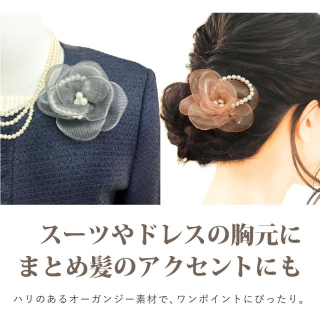 スーツやドレスの胸元はもちろん髪飾りとしても使いやすく