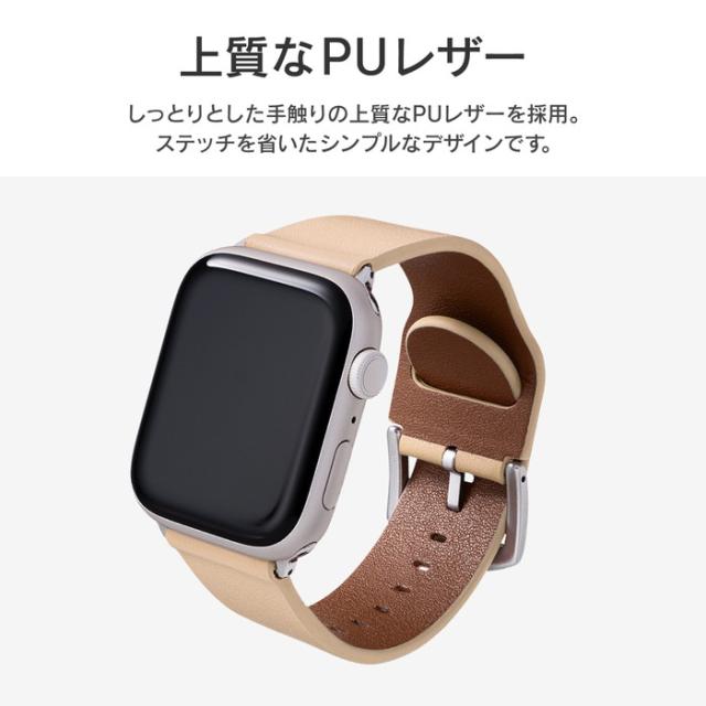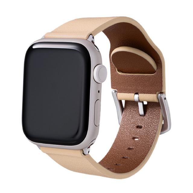 Apple Watch バンド ベルト PUレザーバンド ライトベージュ 裏面耐水 アップルウォッチ 1 2 3 4 5 SE 6 7 (42/44/45mm) メンズ レディース 人気 プレゼント