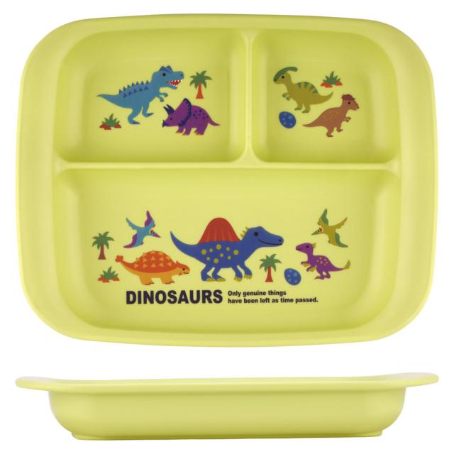 可愛い恐竜がデザインされた、軽くて丈夫なポリプロピレン製ランチプレートです。キズに強く割れにくいので、小さなお子さまでも安心してお使いいただけます。