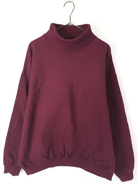 古着 90s USA製 Tultex 無地 ソリッド セットイン タートルネック ヘビー スウェット トレーナー ワイン L