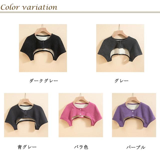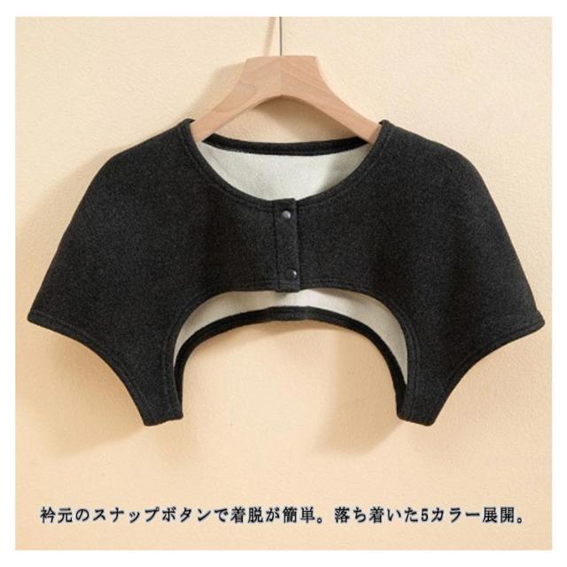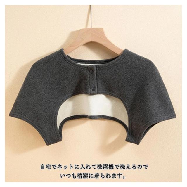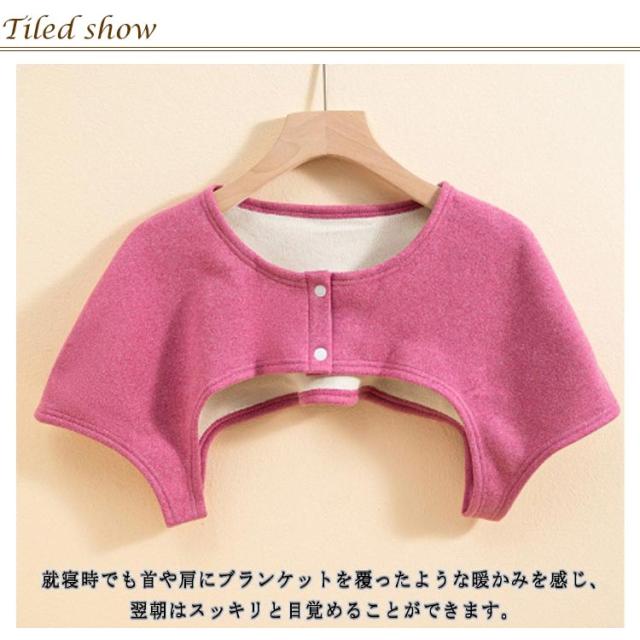 | 【冷えやすい肩を毎日温めて健康に】 就寝時でも首や肩にブランケットを覆ったような暖かみを感じ、翌朝はスッキリと目覚めることができます。 動きやすく、部屋着としてはもちろん寝間着にプラスするのもオススメです。 寝る時/仕事中/家事中やソファーでのくつろぎタイムも暖かく過ごせます。 衿元のスナップボタンで着脱が簡単。落ち着いた5カラー展開。 自宅でネットに入れて洗濯機で洗えるのでいつも清潔に着られます。 | |