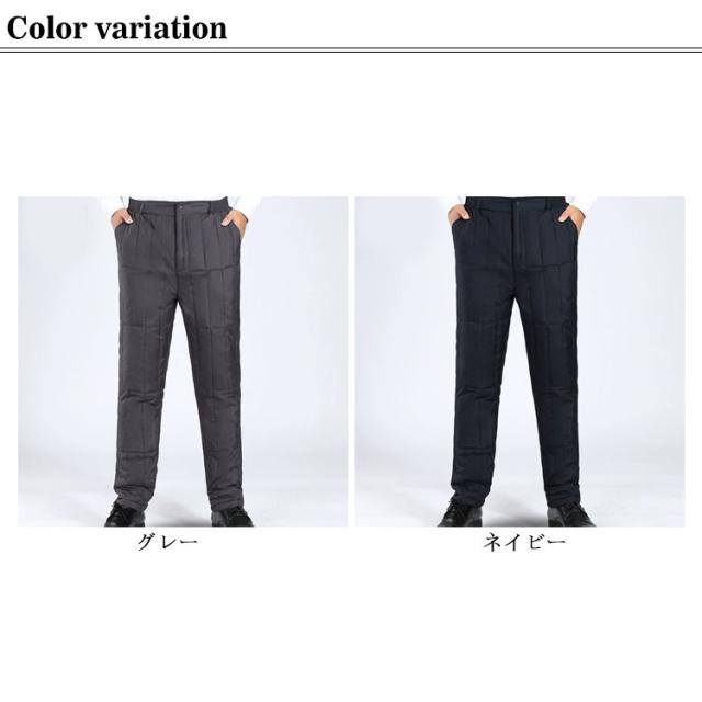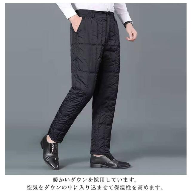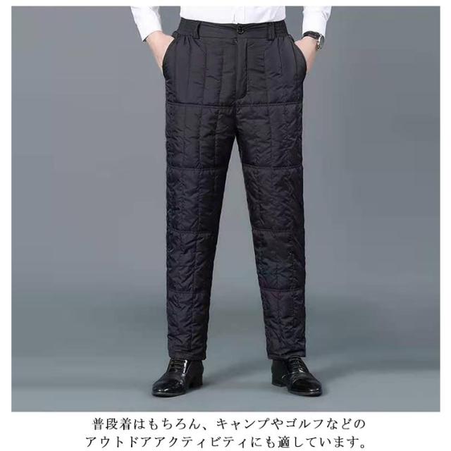 | ダウン入り防寒パンツ【蓄暖・防風】 暖かいダウンを採用しています。空気をダウンの中に入り込ませて保温性を高めます。 キルティングもお洒落デザインで、膨らみすぎない抑えたボリューム感で、スタイリッシュでかっこいい防寒ズボンです。 普段着はもちろん、キャンプやゴルフなどのアウトドアアクティビティにも適しています。 防寒着ならこれ!防風また保温で屋外使いも快適! 軽量で温かく、寒い季節には欠かせないアイテム! 無地でシンプルなデザインなので、20代 30代 40代 50代 60代等の幅広い年代の方に穿いて頂けます。 両サイドにポケットが付いておりウエストはゴムで着脱楽チンです。 コーデのしやすいカラーで、何枚持っていてもオススメのアイテムです。 防水、防風のダウンパンツがたいへん冬季キャンプするのに適合する、徒歩旅行、登山、氷が釣る、スキーなどアウトドアスポーツ。 | |