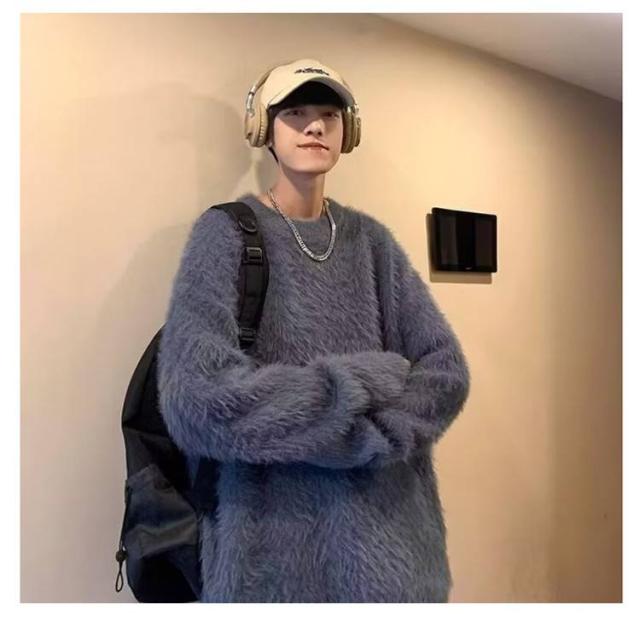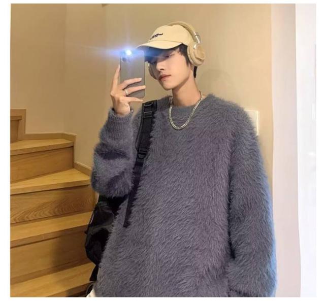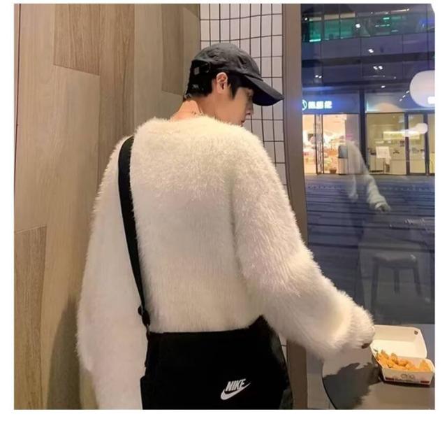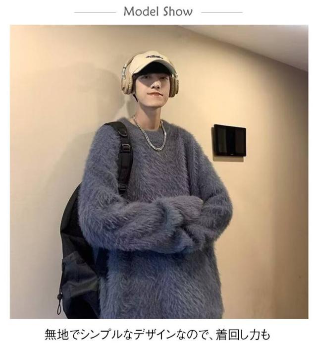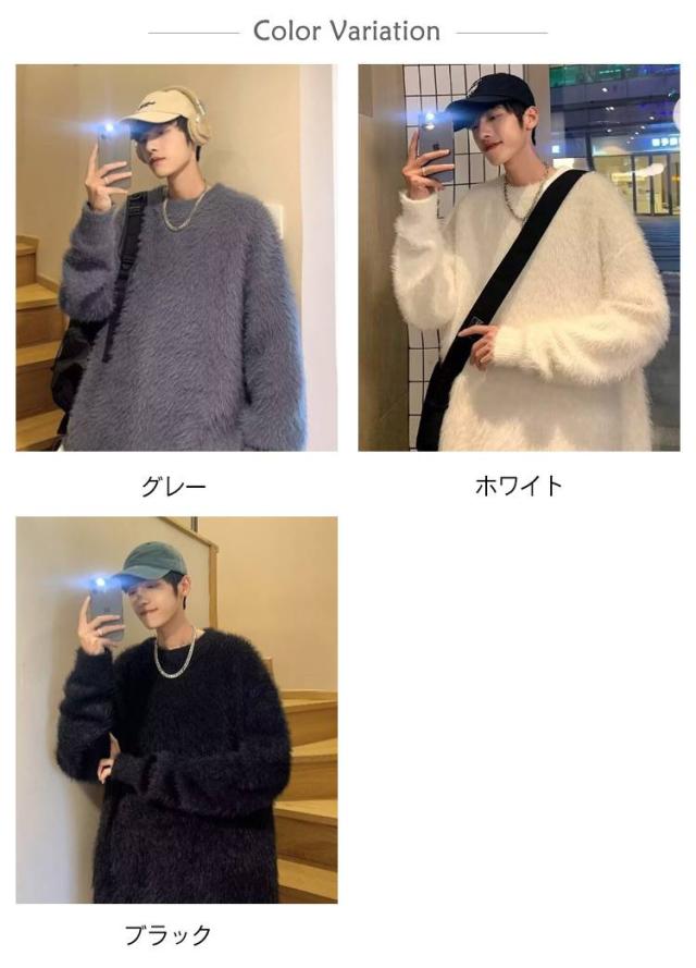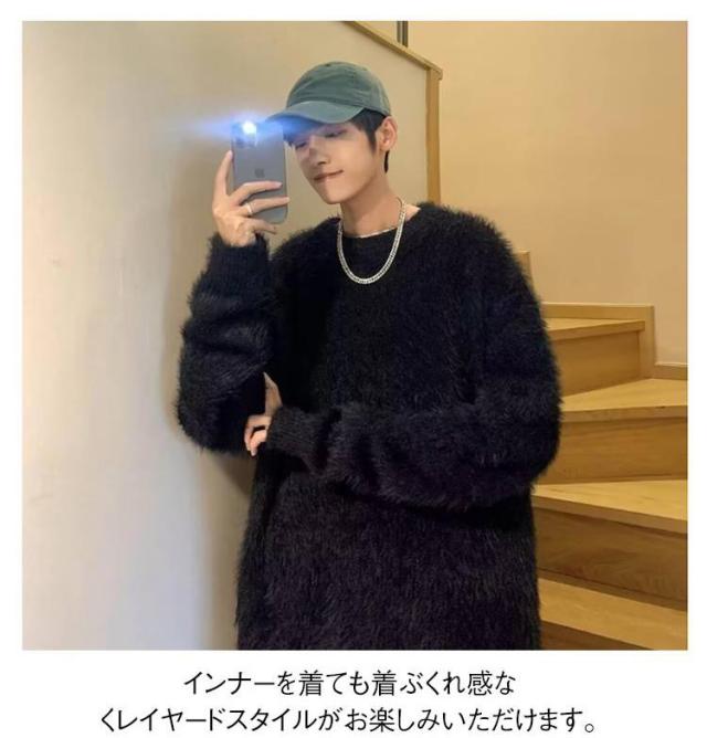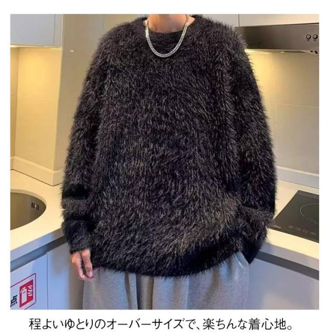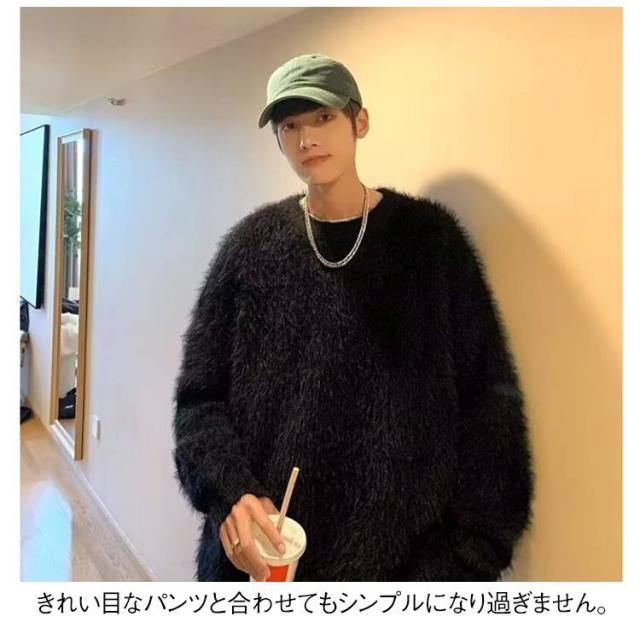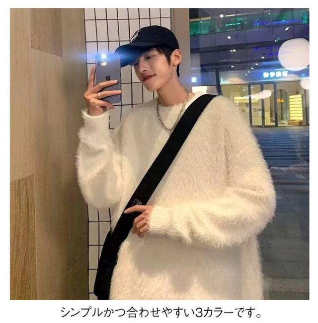プルオーバー トップス もこもこ モヘア調 メンズ ニット 白 ラウンドネック セーター 大きサイズ ゆったり 20代 30代 黒 もこもこ グレー 秋冬 レイヤード 通勤 通学
