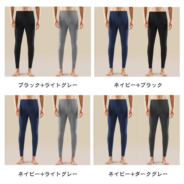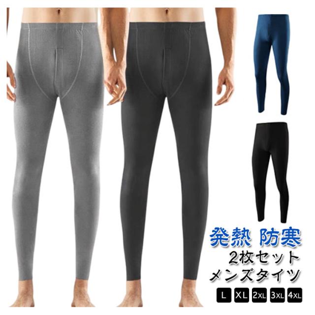 【2枚セット】タイツ 前開き 暖かい メンズ 秋冬 発熱 防寒 冬対策 あったかインナー ももひき レギンス 寒さ対策 両面起毛 インナー 下着 柔らかい スパッツ 暖パンツ 黒 紺 ロングタイツ 紳士肌着 アンダータイツ 冬 大きいサイズ アンダーウェア ズボン下