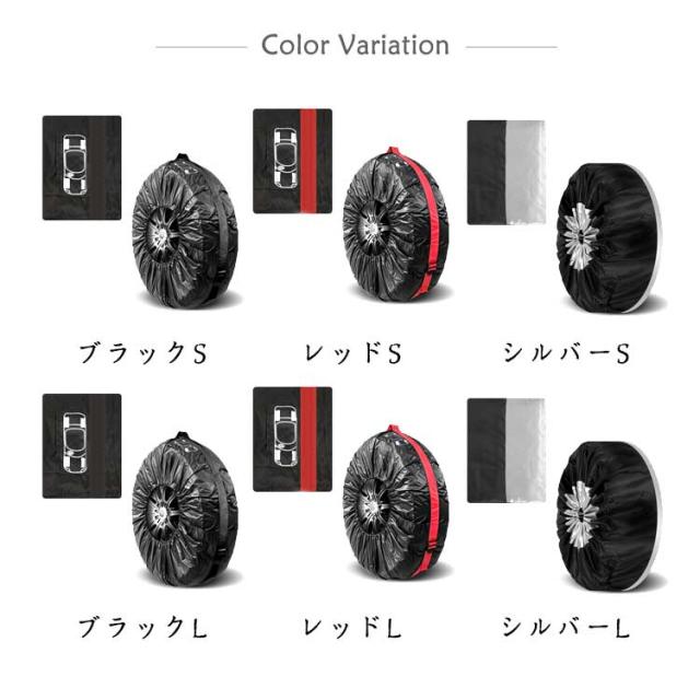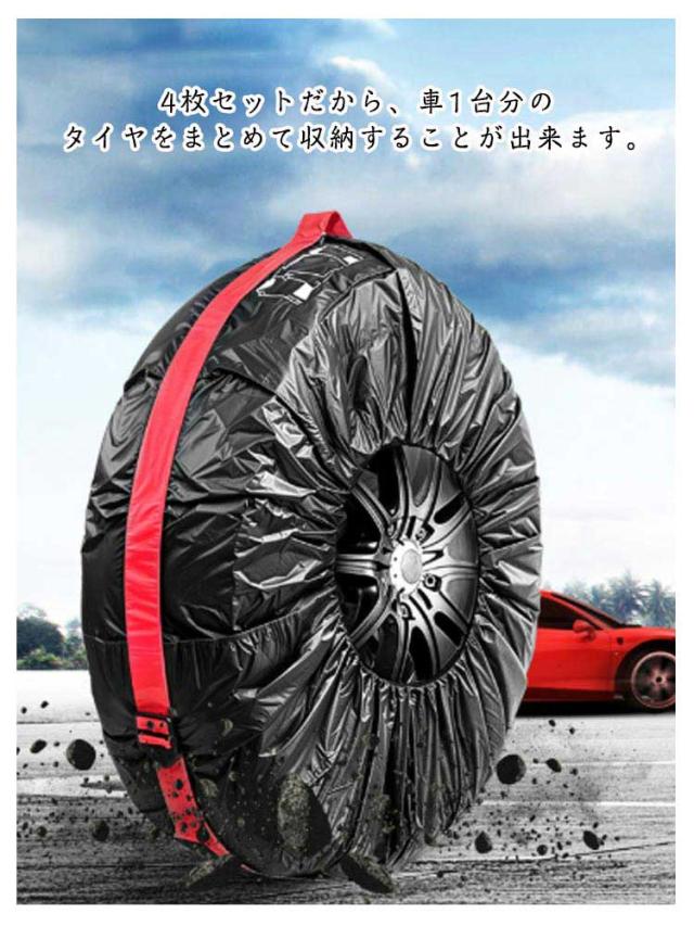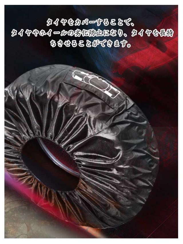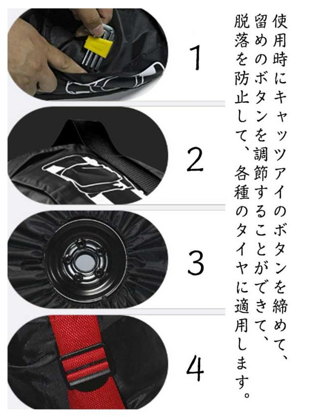 | タイヤカバー4枚セット。 4枚セットだから、車1台分のタイヤをまとめて収納することが出来ます。 雨やほこり・汚れの対策にこれさえあれば安心! タイヤをカバーすることで、タイヤやホイールの劣化防止になり、タイヤを長持ちさせることができます。 1本ずつ収納するカバーだから持ち運びがラクラク! 使用時にキャッツアイのボタンを締めて、留めのボタンを調節することができて、脱落を防止して、各種のタイヤに適用します。 | |