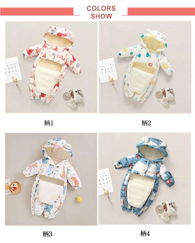 お出かけ 子供 防寒着 ベビー フード付き ファスナー 秋冬 ベビー服 キッズ ロンパース スノーウェア 前開き 軽い スノーウェア 雪遊び 防風 ジャンパー 冬服 無地 新生児 赤ちゃん 防寒きぐるみ つなぎ カバオール 66 73 80 90 100