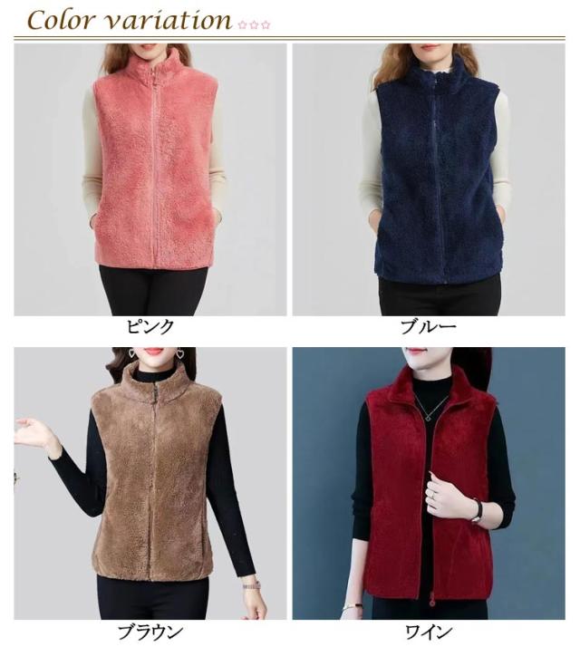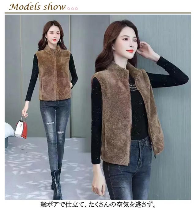 前開き ベスト ベスト フリースベスト もこもこ レディース ボアベスト ボアベスト ボア ジレ アウター 秋冬 スタンドカラー ボア 袖なし 厚手 ボアジャケット 立ち襟 起毛 ルームウェア パジャマ 毛布 部屋着 防寒着 アウトドア
