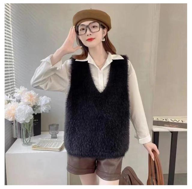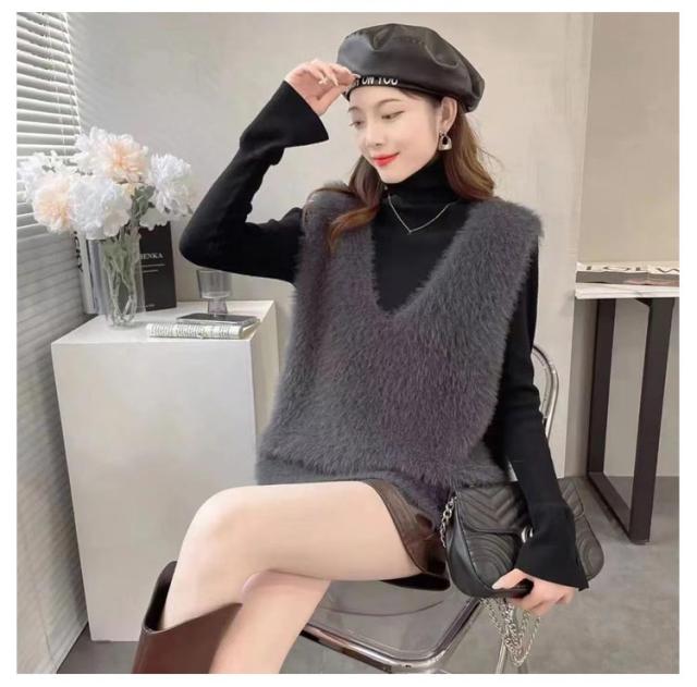 モヘア 秋冬 ベスト レディース ニットベスト シャギーベスト ニット シャギーニット レイヤード シャギーニットベスト Vネック トレンド トップス ニットベスト プルオーバー ジレ ノースリーブ おしゃれ きれいめ 黒 ブラック グレー 春 秋冬