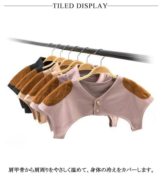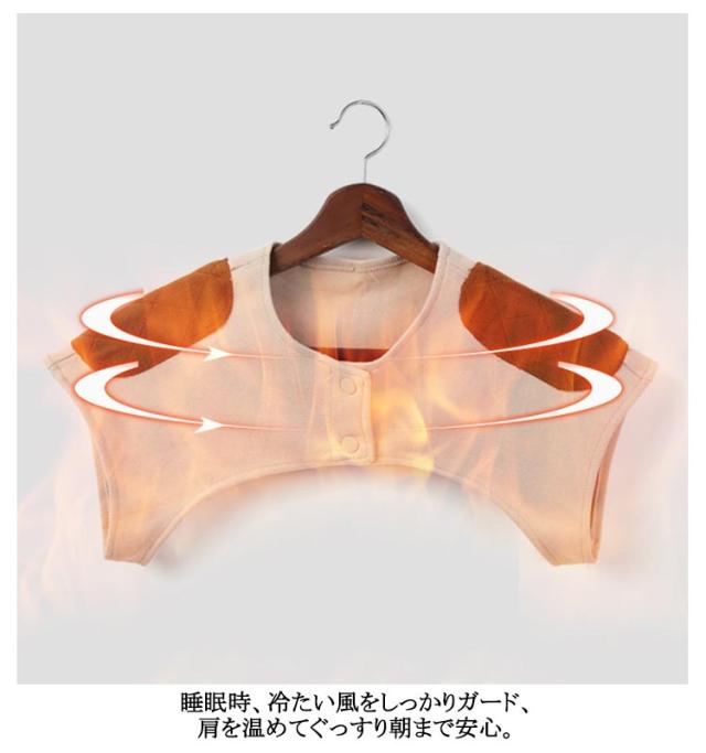 | 2タイプ選べる!寒い日にサッと羽織れる肩当てです。 睡眠時、冷たい風をしっかりガード、肩を温めてぐっすり朝まで安心。 内側に絨毛パッドがあり、柔らかく上質な肌触りで、着るだけで肩が温まり、一日中サラサラの着心地です。 肩甲骨から肩周りをやさしく温めて、身体の冷えをカバーします。 フロント部分にボタンが付いて、ずれて落ちないストレスのないデザインになっています。 冬だけでなくクーラーで身体が冷える夏場にも活躍するアイテムです。 | |