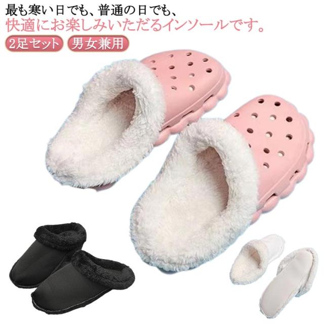 2足セット インソール 冬用 クロックスライナー ふわふわ 中敷き 裏ボア あったか 取り外し可能 クロックス 保温性 ファーライナー 暖かい 大きいサイズ 衝撃吸収 スリッパ スリッボン 女性 男性 送料無料