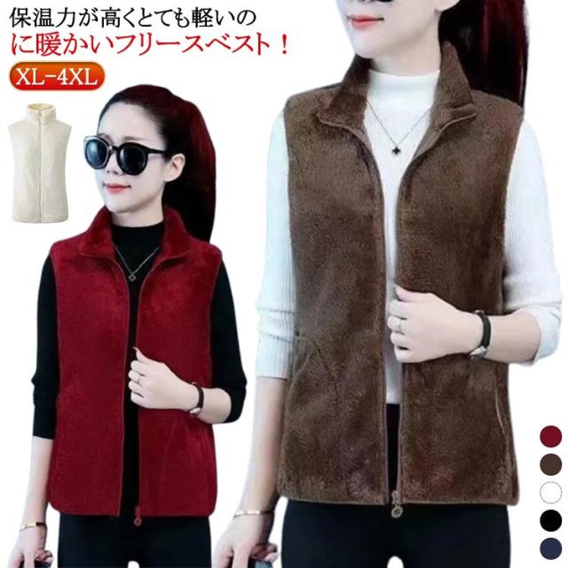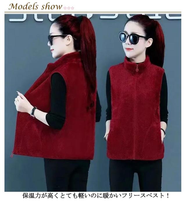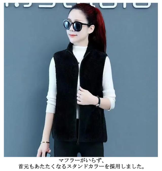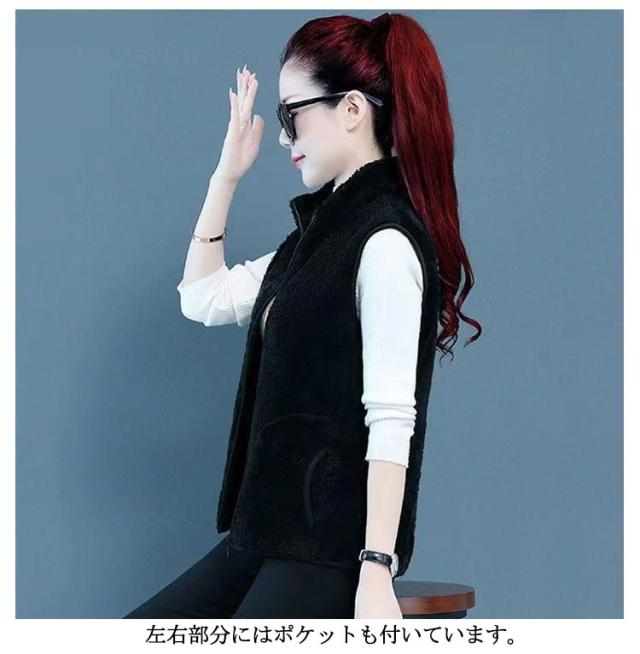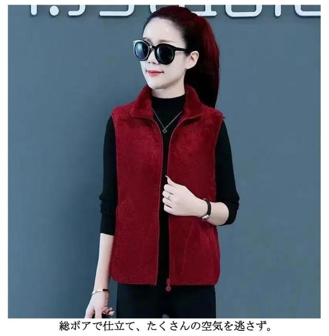 レディース ボア ジレ フリース ボアベスト 袖なし ベスト 前開き フリースベスト ボアベスト もこもこ ボアジャケット ノースリーブ アウター 厚手 スタンドカラー 立ち襟 起毛 ルームウェア パジャマ 毛布 部屋着 防寒着 アウトドア