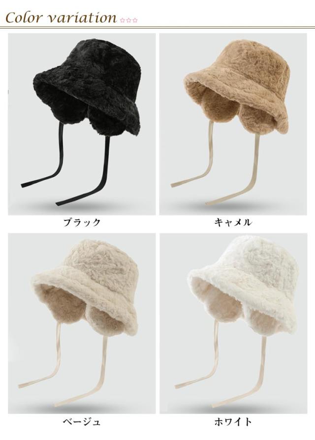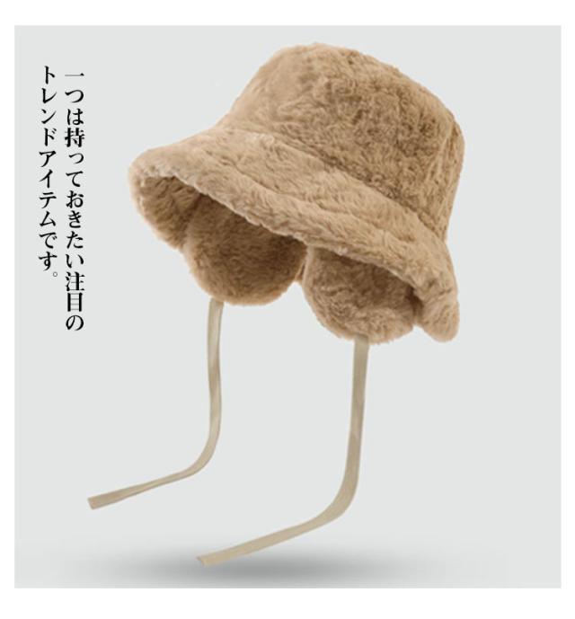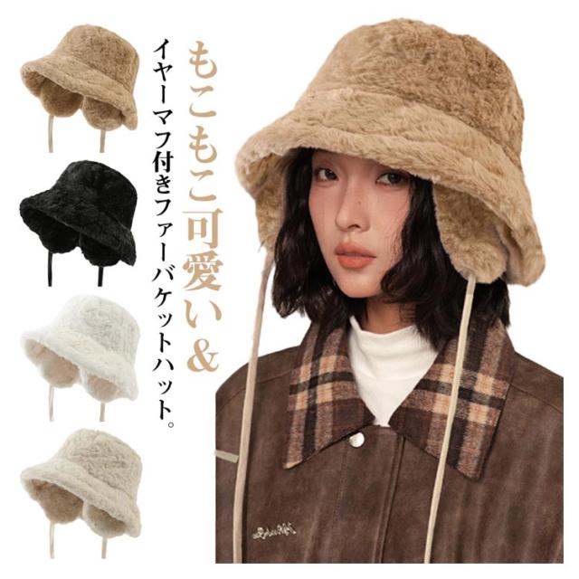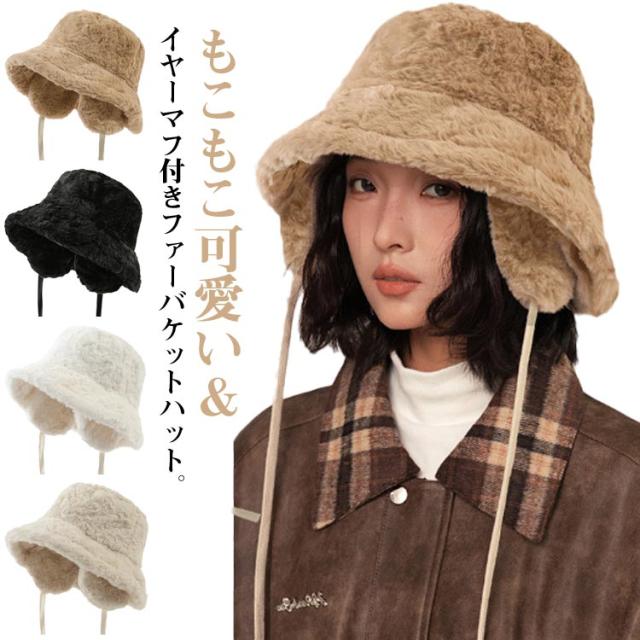 ハット もこもこ レディース バケットハット 帽子 フェイクファー かわいい 冬 あったか 無地 防寒 おしゃれ 紐 ふわふわ 折りたたみ 耳当て デイリー コンパクト イヤーマフ カジュアル シンプル 調節 韓国 コーデ アウトドア キャンプ イアマフ
