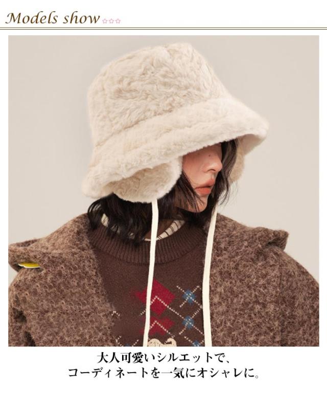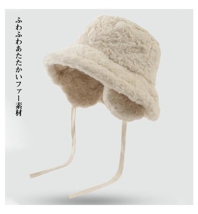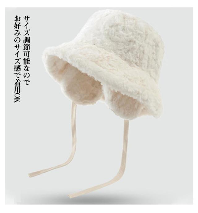 かわいい 冬 もこもこ イヤーマフ 紐 バケットハット あったか フェイクファー 帽子 防寒 アウトドア おしゃれ ハット ふわふわ 折りたたみ 耳当て レディース 無地 調節 カジュアル シンプル デイリー 韓国 コーデ バケットハット キャンプ イアマフ