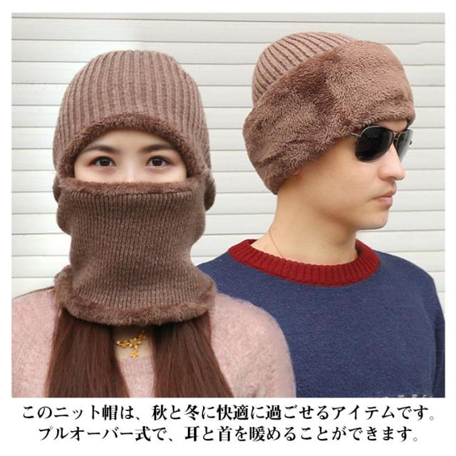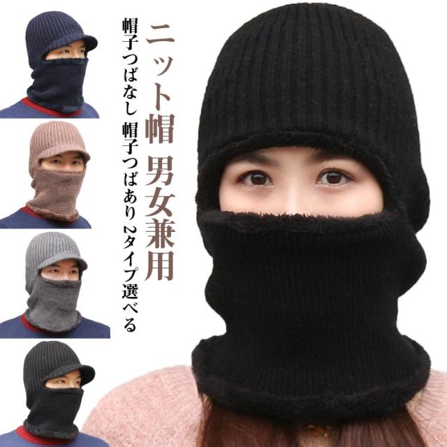 男女兼用 帽子つばなし ニット帽子 冬用帽子 耳保護 ニット帽 帽子つばあり フードウォーマー 裏起毛 レディース 保温 2タイプ選べる 防風 通気性良好 肌触り良い 一体型ネックウォーマー 快適 おしゃれ 通勤 通学 自転車