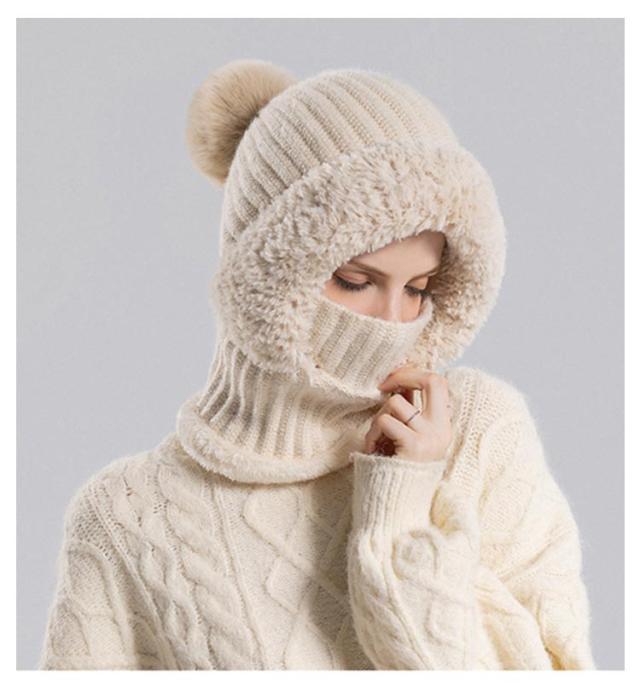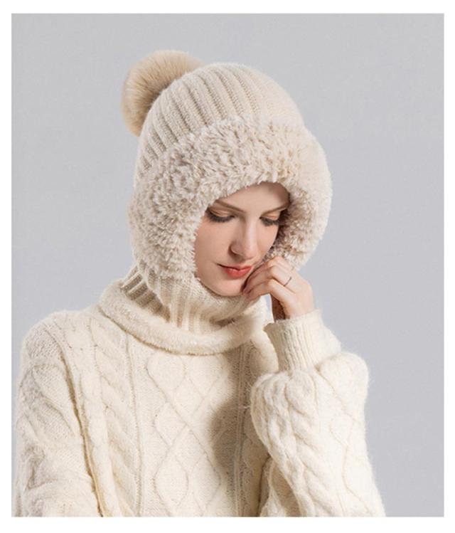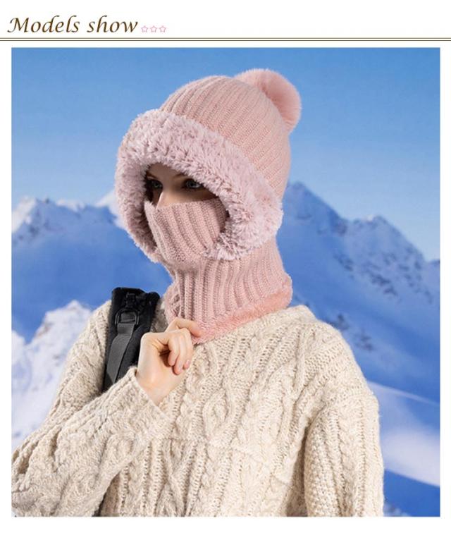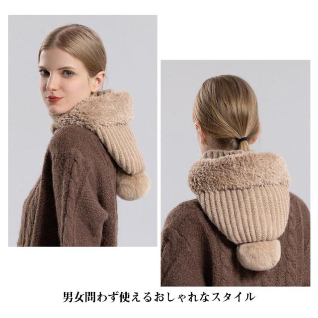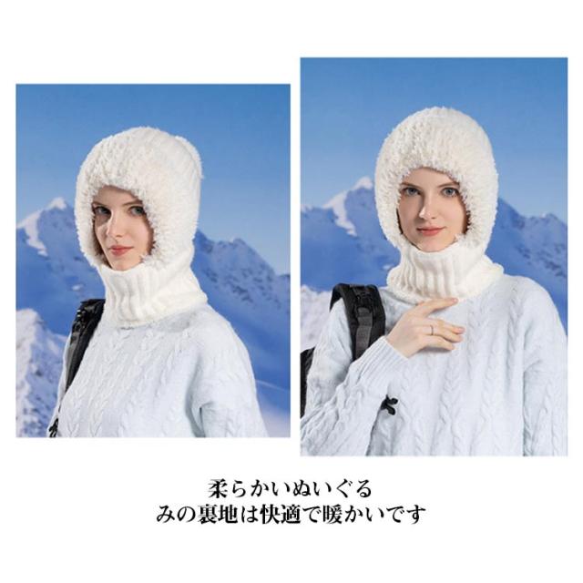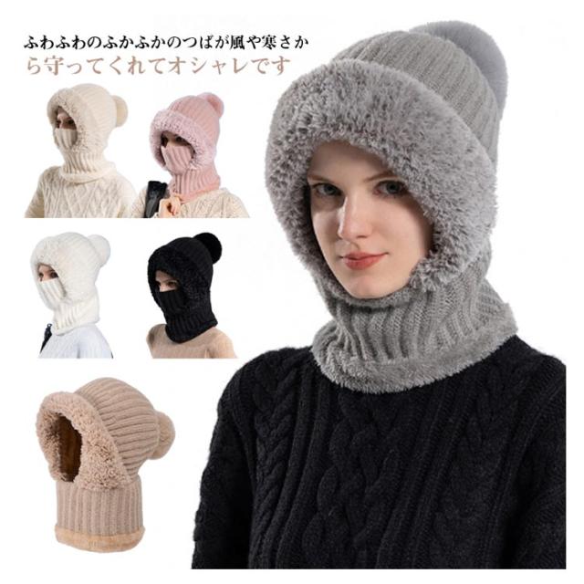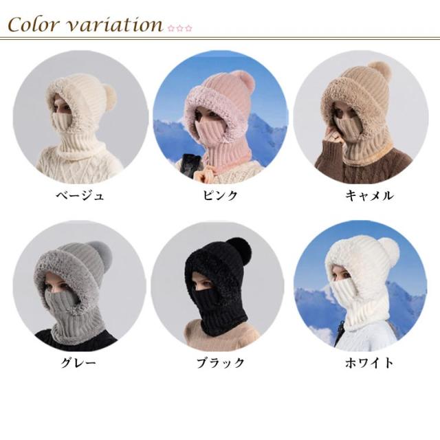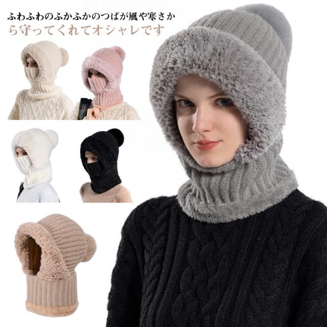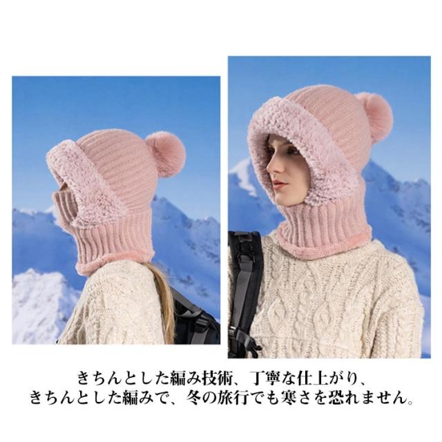 冬用帽子 快適 裏起毛 防風 ポンポン付き 保温 耳保護 かわいい 肌触り良い 通勤 おしゃれ レディース 一体型ネックウォーマー ニット帽子 フードウォーマー 通気性良好 通学 自転車 可愛い 優れた保温性 フードウォーマー 機能的