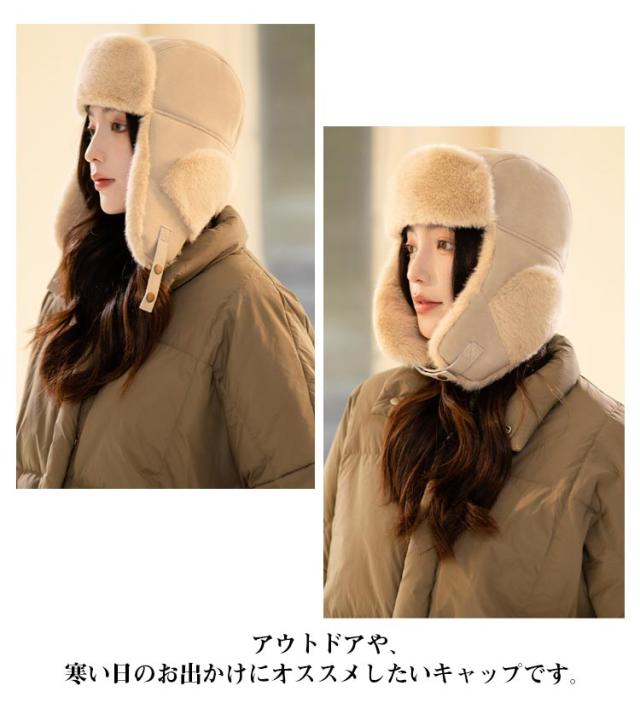 帽子 耳あて 男女兼用 かわいい キャップ ファー イヤーフラップ イヤーフラップ 耳つきキャップ 耳当て あたたかい フライトキャップ アウトドア キャンプ スキー 秋冬 耳つき パイロット レディース 雪 スノボ 耳あて付き帽子