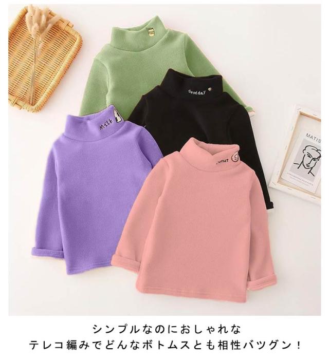 インナーシャツ 子供服 長袖 Tシャツ トップス 裏起毛 ハイネック 男の子 女の子 刺? かわいい 子供用 トップス プルオーバー 長袖 ハイネック 両面起毛 長袖tシャツ プルオーバー 厚手 暖かい 防寒 ユニセックス あったか 普段着