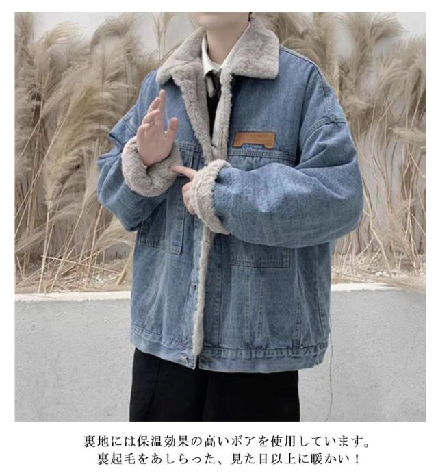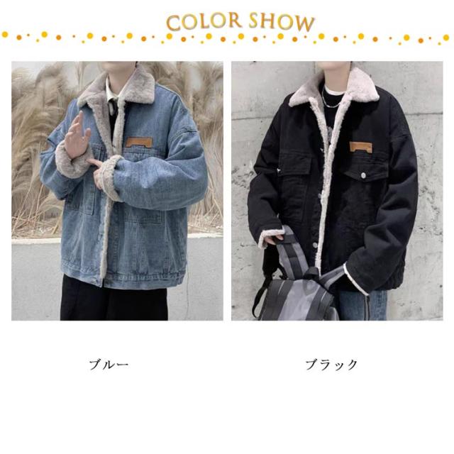 アウター メンズ 裏ボアジャケット デニム デニムジャケット 裏ボア 裏ボア 羽織り ジージャン アウター コート 防寒着 暖かい 防寒ジャケット Gジャン デニムコート ショートコート 保温 冬服 お洒落 ブラック