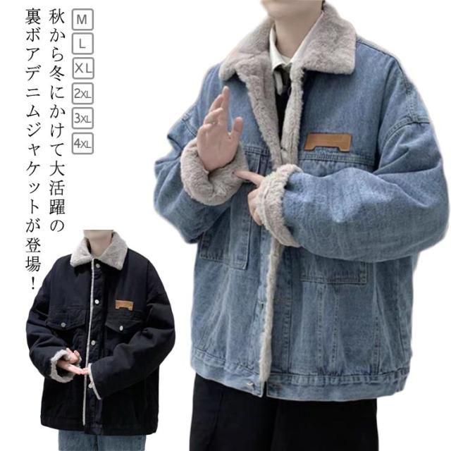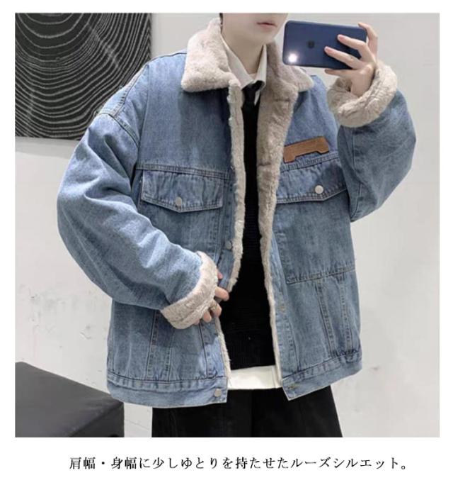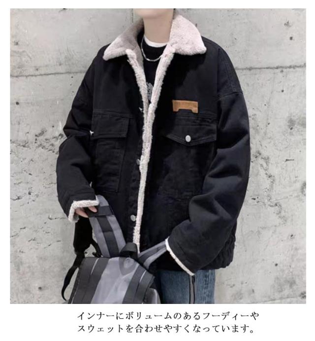 Gジャン デニム メンズ デニムジャケット ボアジャケット ジージャン 裏ボア 裏ボアジャケット 防寒ジャケット 防寒着 コート アウター 暖かい デニムコート 羽織り 保温 ショートコート アウター 冬服 お洒落 ブラック
