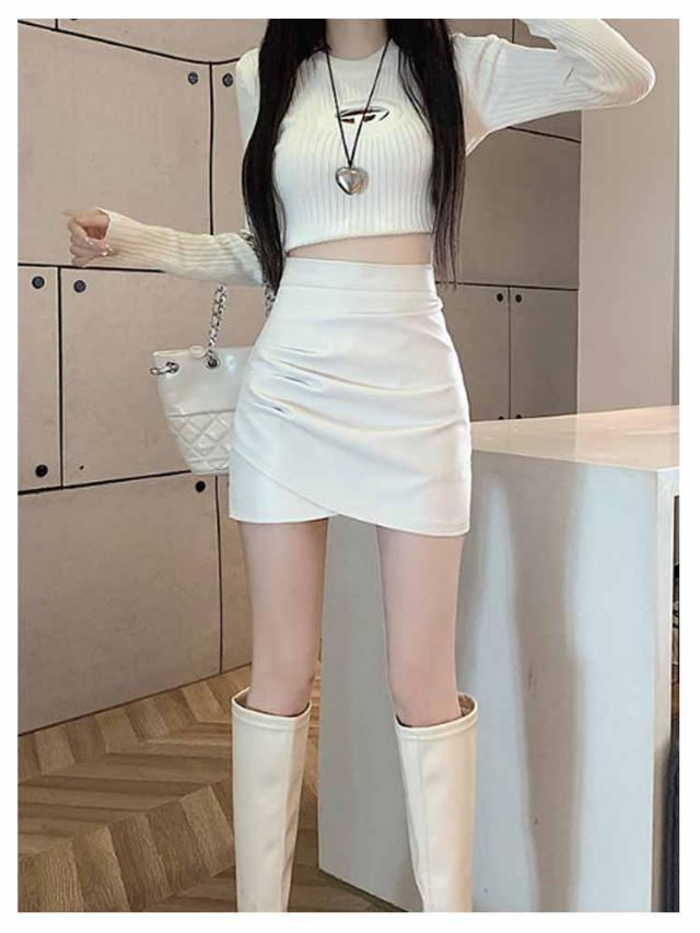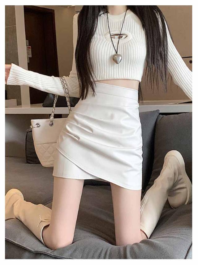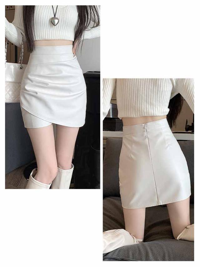 レザータイトスカート タイト レザースカート ミニスカート レザータイトスカート ペンシルスカート スカート PUレザー エナメル タイトスカート ショート丈 レディース エコレザー スリム ハイウエスト ギャザー入り 着?せ ボディコン 送料無料 ブラック ホワイト