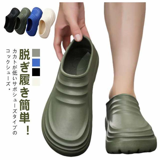 厚底 コックシューズ 黒 コックサンダル メンズ 耐油 白 防水 サボ サンダル スリッポン 男性 厨房シューズ 耐油性 黒 キッチンシューズ 飲食店靴 調理靴 滑りにくい 立ち仕事 コックシューズ 厨房