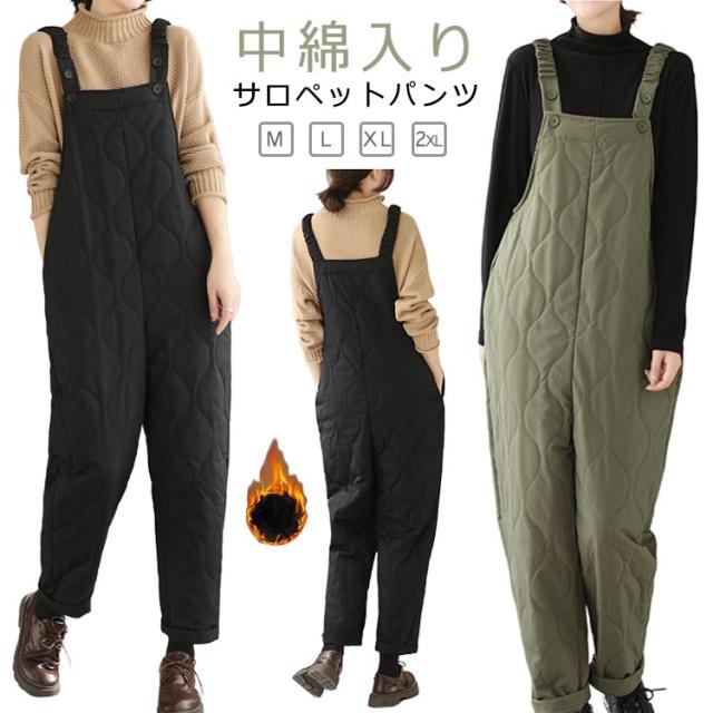 あったか ボトムス レディース 中綿パンツ ロングパンツ サロペット オールインワン 秋冬 大きい ゆったり ワークパンツ ルームウェア 中綿入り 暖かい アウトドア お洒落 20代 30代 40代 可愛い