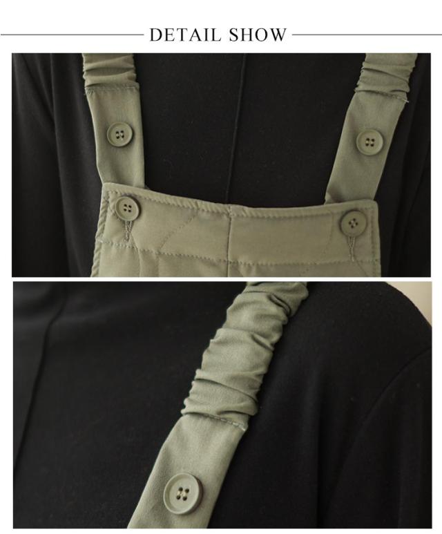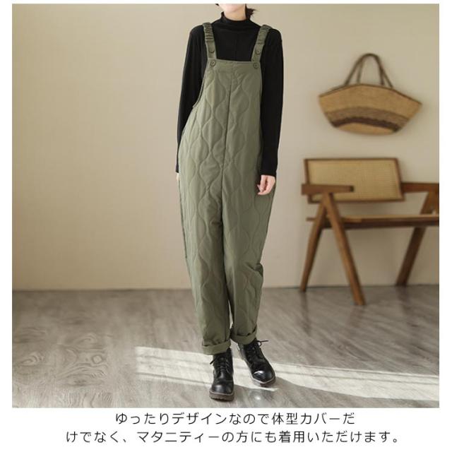 | 春秋冬などの寒い日には、ロングシーズン楽しめるサロペットパンツです。 中綿が空気をたっぷりと含み、しっかりと熱を逃がさない防寒性と保温性も優れています。 シンプルなトップスやTシャツと合わせるだけで、さらりとキマる着こなしが実現できます。 ゆったりデザインなので体型カバーだけでなく、マタニティーの方にも着用いただけます。 部屋着、ルームウエアだけではなく、ちょっとしたアウトドアやバーベキューなどにもピッタリです。 | |