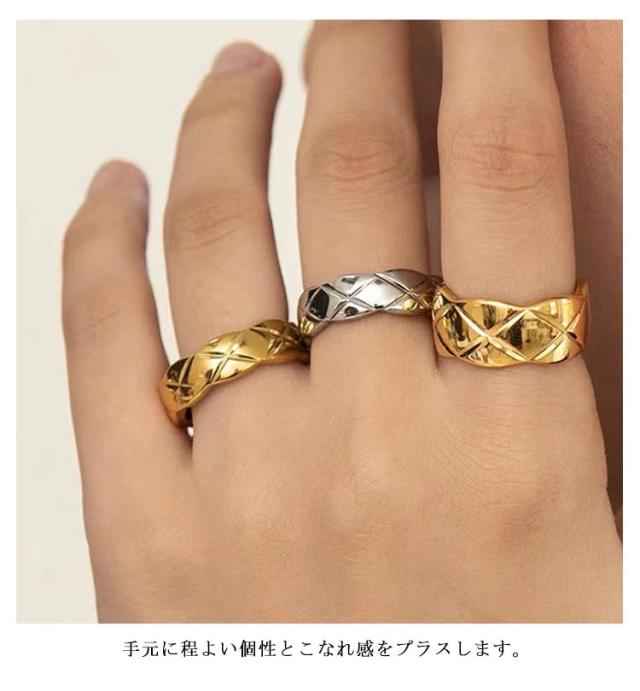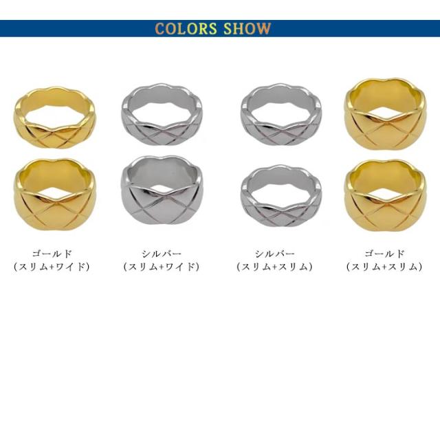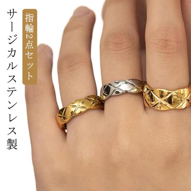 リング 重ね付け ピンクゴールド 指輪 シルバー ステンレス ワイド スリム 指輪 2点セット サージカルステンレス ゴールド k18 仕上 金属アレルギー キルティング リング ニッケルフリー シンプル ジュエリー アクサセリー