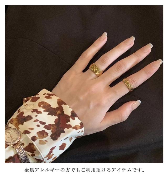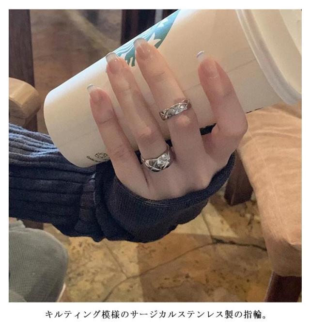 | 【指輪2点セット】【サージカルステンレス製】 幅広ながらも女性らしいやさしさを演出してくれるデザインに仕上げています。 手元に程よい個性とこなれ感をプラスします。 キルティング模様のサージカルステンレス製の指輪。 金属アレルギーの方でもご利用頂けるアイテムです。 ぷっくりとしたツヤ感が大人可愛いキルティング模様のデザイン | |