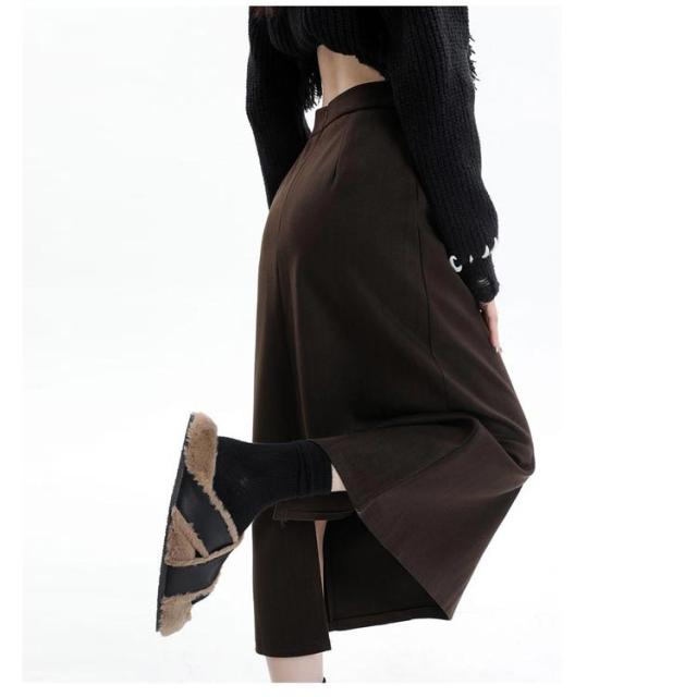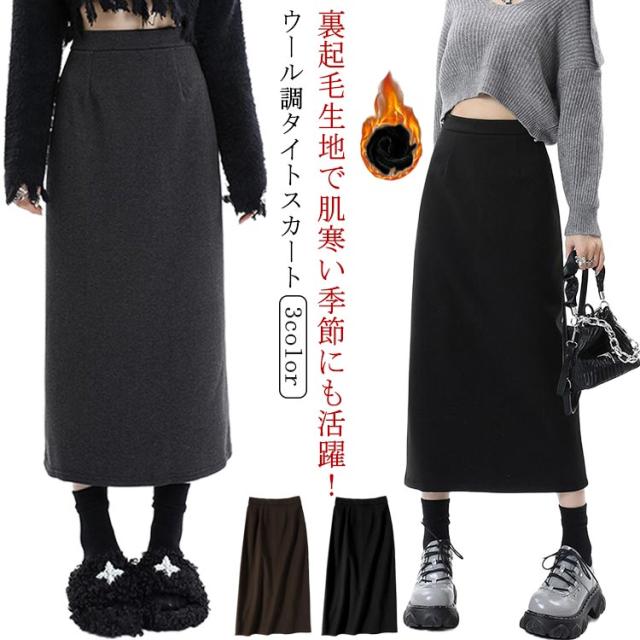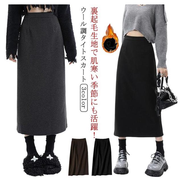 ウール調 タイトスカート ミモレ丈 秋冬 レディース 通勤 ロングスカート スカート 50代 ハイウエスト ラシャ 通学 裏起毛スカート バックスリット 大きいサイズ タイト 裏起毛 大人 カジュアル きれいめ 20代 40代 30代 スカート 無地 シンプル 黒 コーヒー