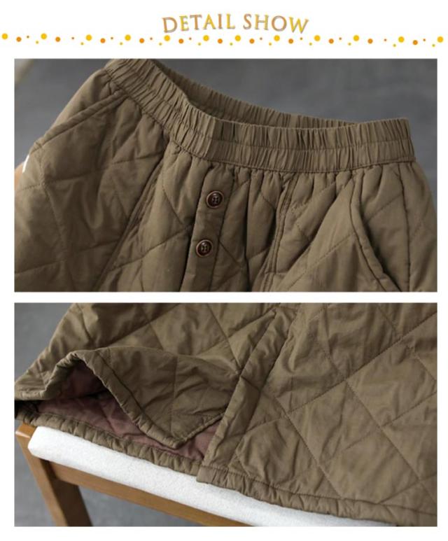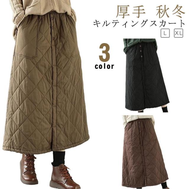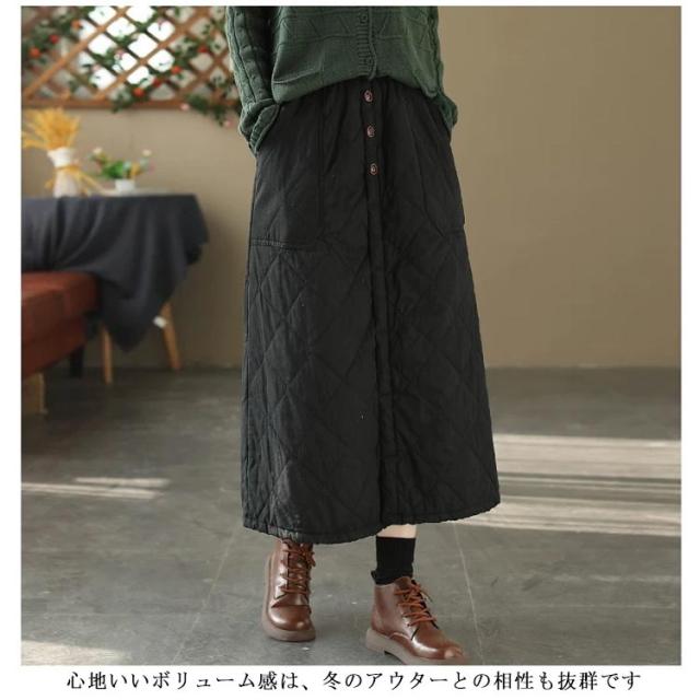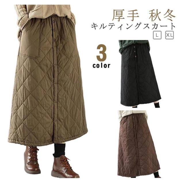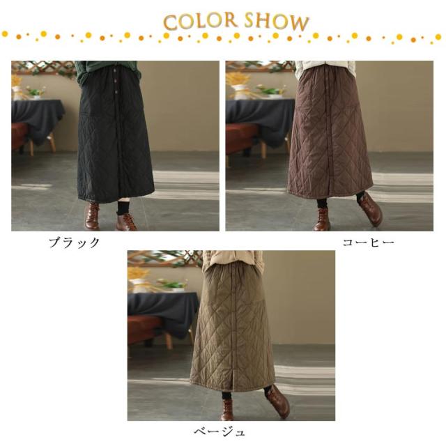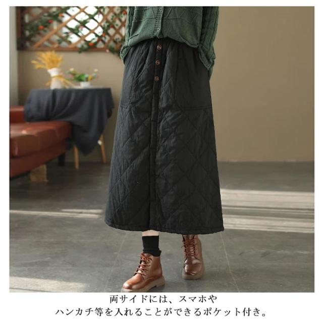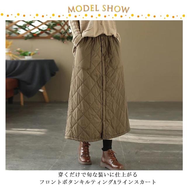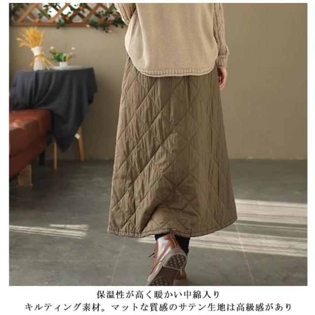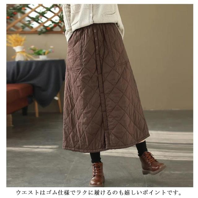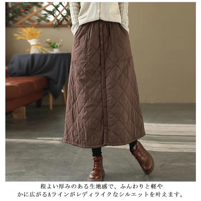 aラインスカート 防寒 Aライン スカート 秋冬 キルティングスカート 厚手 ゴム あったか ミモレ丈 ロングスカート 軽量 レディース 50代 キルティング 中綿 キルト キルティング ゴムウエスト ポケット付き 大人 きれいめ カジュアル おしゃれ 茶色 【送無】