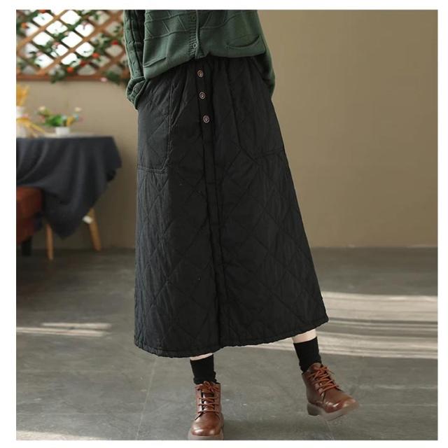 | 穿くだけで旬な装いに仕上がるフロントボタンキルティングAラインスカート 保温性が高く暖かい中綿入りキルティング素材。マットな質感のサテン生地は高級感があり 程よい厚みのある生地感で、ふんわりと軽やかに広がるAラインがレディライクなシルエットを叶えます。 ウエストはゴム仕様でラクに履けるのも嬉しいポイントです。 両サイドには、スマホやハンカチ等を入れることができるポケット付き。 心地いいボリューム感は、冬のアウターとの相性も抜群です | |