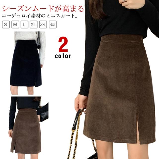 ミニ丈 厚手 レディース 40代 タイトスカート コーデュロイ インナーパンツ付き おしゃれ タイト きれいめ 台形 ショート丈 コーデュロイスカート スリット 大きいサイズ 通勤 通学 大人 秋冬 ミニスカート カジュアル 50代 コーデュロイ 30代 20代 無地 シンプル