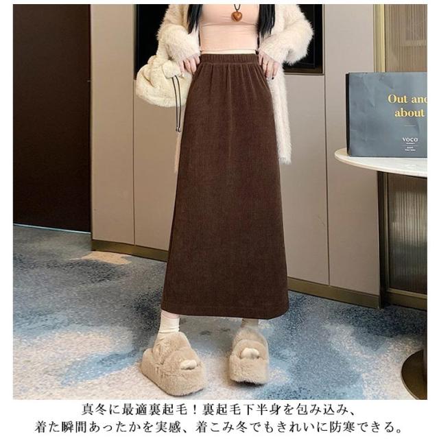 タイト 大きいサイズ 厚手 裏起毛 秋冬 コーデュロイ コーデュロイ コーデュロイスカート マキシ丈 ゴム 50代 大人 ハイウエスト バックスリット ロングスカート 通勤 タイトスカート スカート カジュアル きれいめ 通学 40代 30代 20代 無地