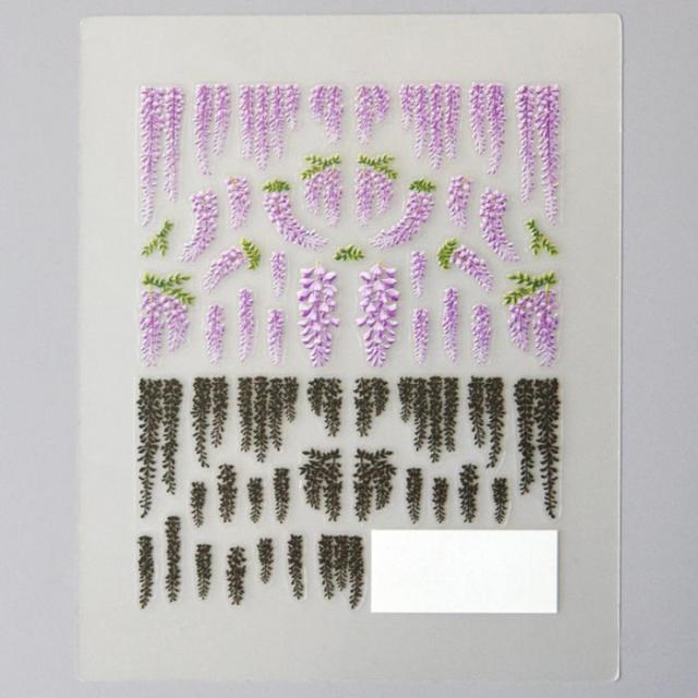 | 藤色と黒いシルエットで表現しました。 ※粘着力が強いためシールがはがれにくい素材になっています。ピンセットをご利用してください。 |