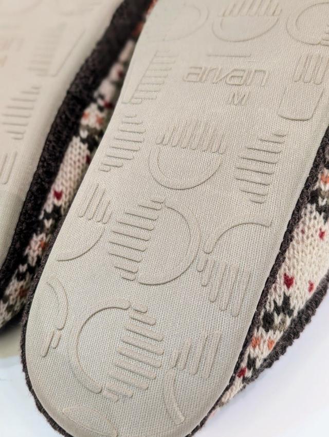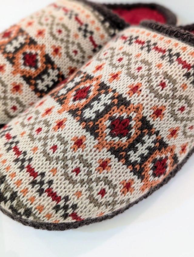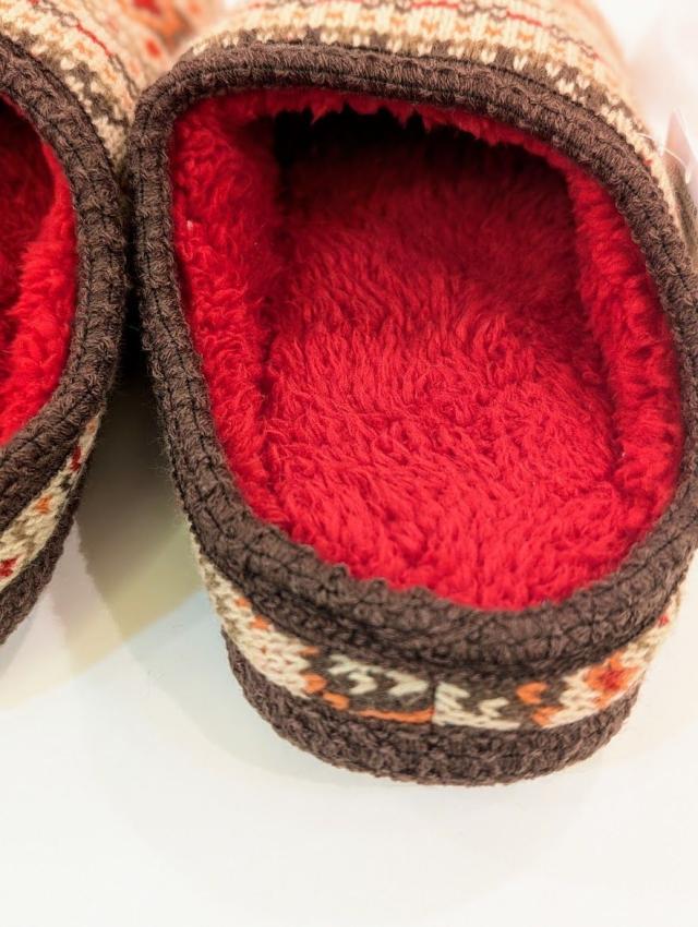 可愛らしいフェアアイル柄のルームシューズ。