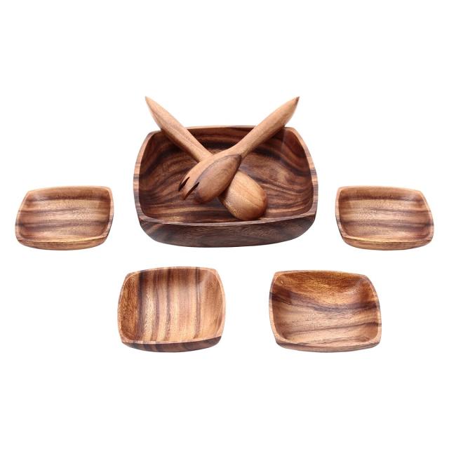 不二貿易 アカシアボウルセット スプーン&フォーク付 A スクエア WD-3150 【メーカー直送・代引不可・置配不可・配送地域限定】