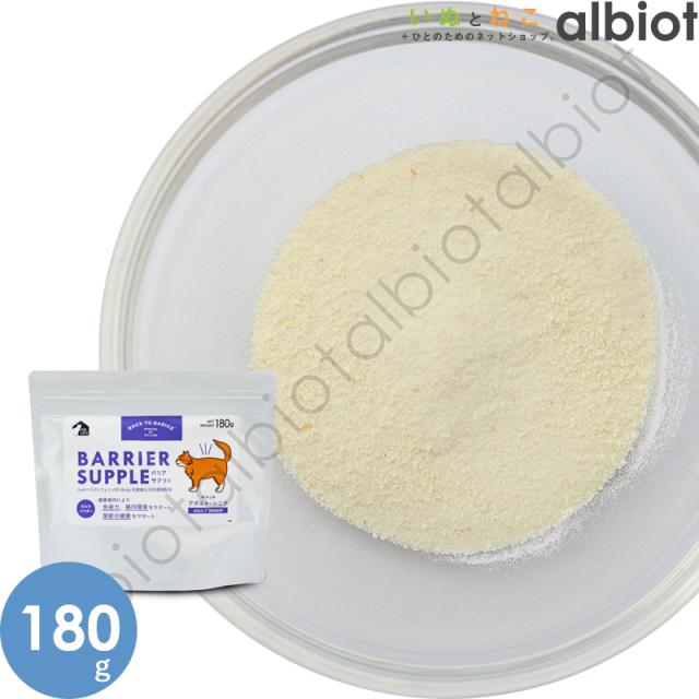バリアサプリ アダルト・シニアは免疫力を高める働きが期待される機能性タンパク質『ラクトフェリン』、アガリクスキノコから抽出した『βグルカン』、腸内環境の健康を維持する『EC-12(乳酸菌)』、関節の健康をサポートする『グルコサミン』『サメ軟骨』『ヒアルロン酸』を配合した愛犬用サプリメントです。