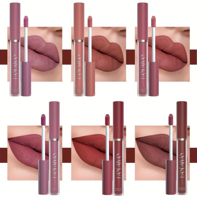 6個のマットリキッドリップスティックメイクアップセット、マットリキッドロングラスティングウェアノンスティックカップフェードしない防水リップグロス