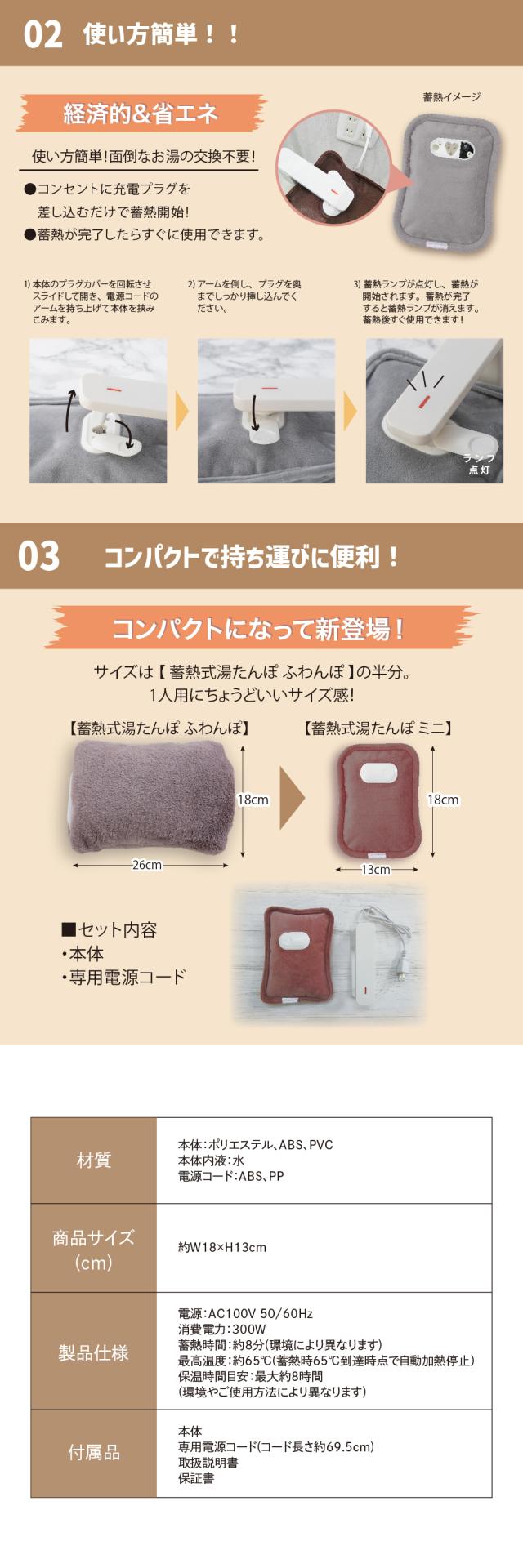 保温時間目安:最大約8時間(室温25度であんかとして布団などでくるんで使用した場合/環境やご使用方法により異なります)