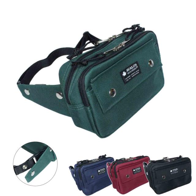 ウエストポーチ 角型 バッグ 盗難防止 二重ロック構造 ブランド AVALON アバロン 7002 本体2室 前ポケット付き 集金 旅行 お出掛け お散歩