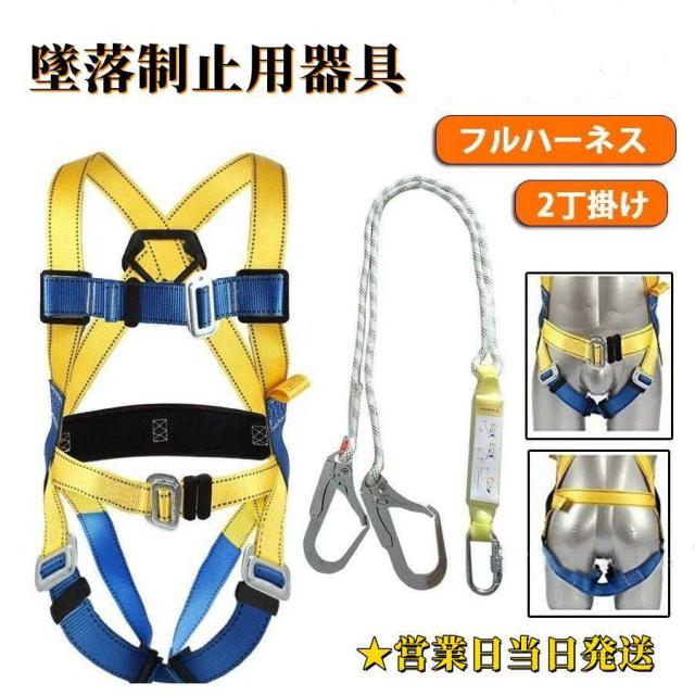 安全帯 フルハーネス 2丁掛け 墜落制止用器具 ハーネス 胴ベルト型 保護ロープワンタッチバックル 落下防止 全身保護 新規格適合 高所安全作業用