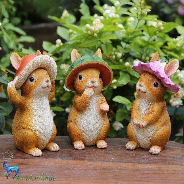 森のうさぎ きのこ帽子 S 置物/オーナメント/ガーデニング/うさぎ/ラビット/カントリー/ラビットグッズ/うさぎグッズ/うさぎ雑貨/うさぎ置物
