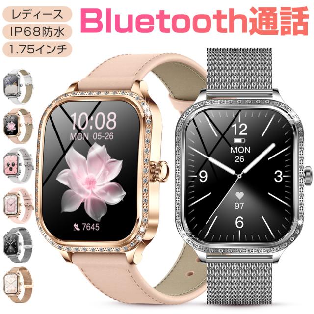 スマートウォッチ レディース Bluetooth通話 1.75インチ大画面 血中酸素 心拍 歩数 カロリー 健康管理 スマートブレスレット リストバンド 腕時計 着信通知 IP68防水 睡眠 Siri 生理周期 女性健康 音楽再生 大容量バッテリー iPhone Android メンズ ギフト MK88 送料無料