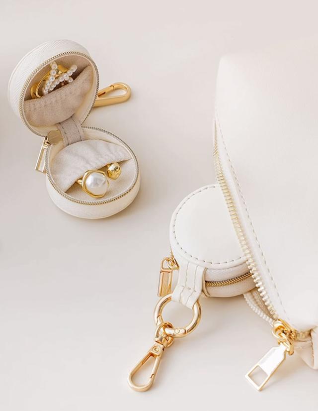 ミニ ジュエリーケース コンパクト 選べる3色 アクセサリーケース チャーム ジッパー式 マルチ ケース アクセサリー収納 持ち運び 携帯用 収納 プチ 小さめ 小型 ミニ 可愛い ジュエリー 収納 便利 トラベル 出張 ピアス ネックレス リング