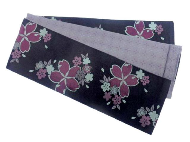 日本製 半幅帯 半巾 細帯 浴衣帯 四寸帯 結び帯 着付け 練習 帯 小紋 浴衣 袴 リバーシブル四寸帯 黒 ブラック 桜 紫 パープル 十字絣 No.12